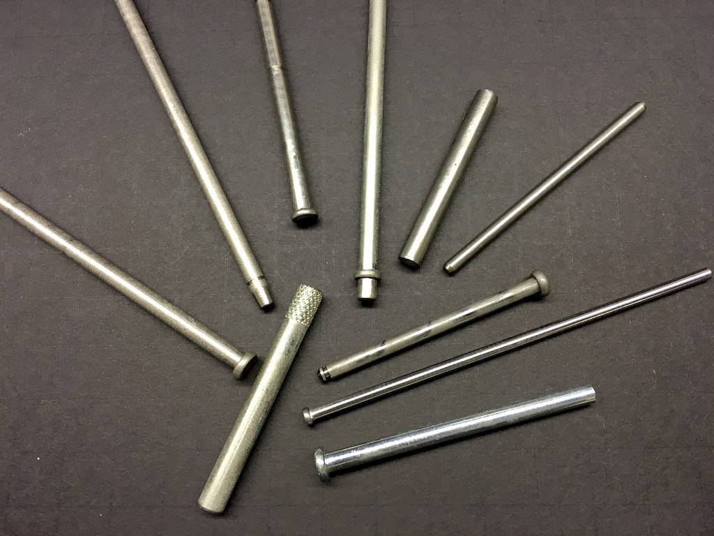 Fostermation, Inc. produces Hinge Pins, which are cylindrical fasteners used to locate, align and join two component parts. We produce straight, headed, ground and knurled configurations. The ends are typically chamfered for ease of insertion into the mating pieces. Hinge pins can also be slotted or grooved to accommodate o-rings or e-rings. Fostermation, Inc. presently produces hinge pins that are used in fuel doors, tailgates and hatchback assemblies for the automotive industry; as well as hinges used in tackle boxes, appliance doors, and heavy equipment cabs.